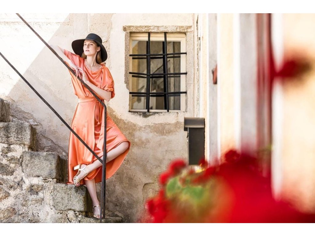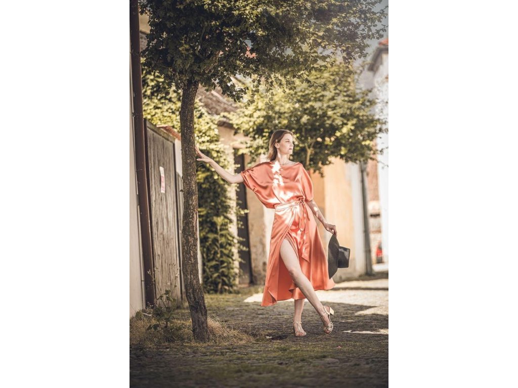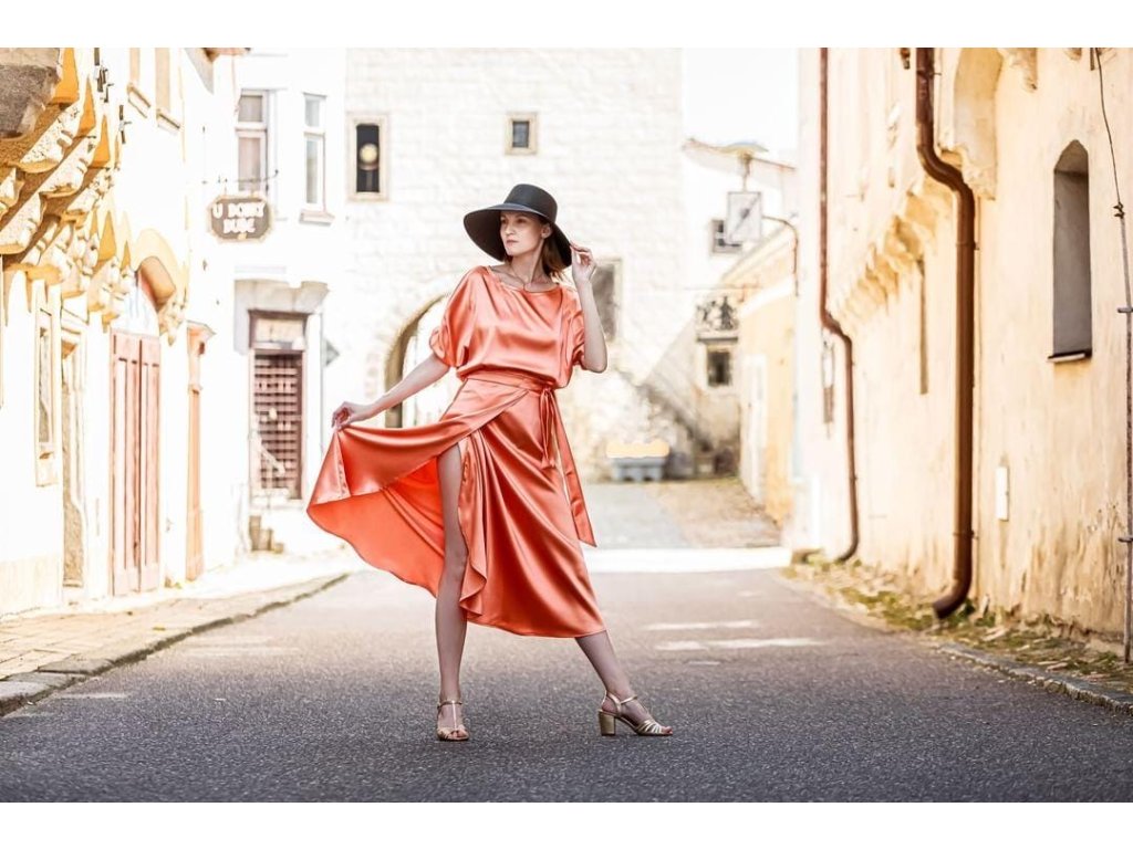 Saténový komplet rozhodně patří do Vašeho šatníku. Můžete ho vzít k mnoha příležitostem - ke společenské události jako jsou svatby, letní párty a večírky, stejně tak k procházce do zámeckého parku. My jsme fotili v nádherných Slavonicích.