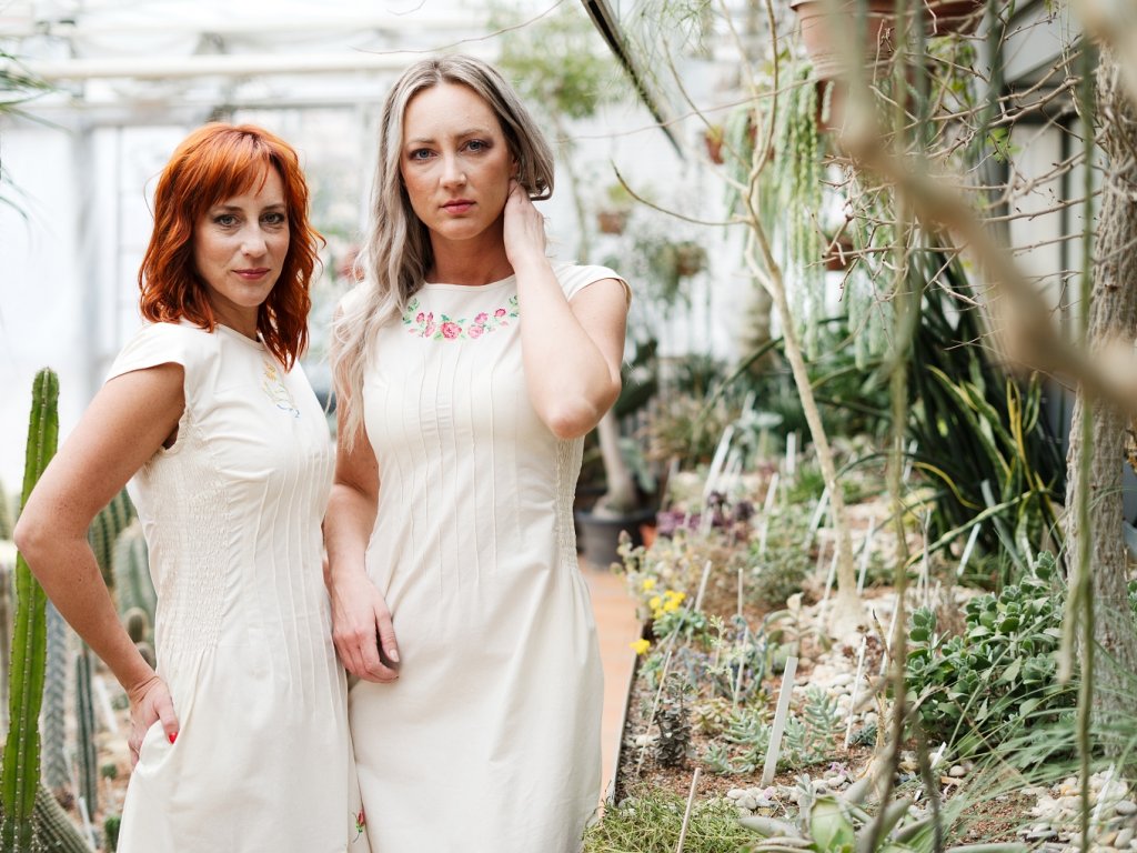 Plátěné šaty z režné nebělené bavlny. Šaty mají mírně spadený rukávek. V bočním díle jsou zpracované do gumiček, které zdůrazní ženskou postavu. Kapsy nesmí chybět. Něžnost šatům dodávají květinové výšivky. Působí velmi žensky. Lidový vzhled podtrhuje zavazování šatů ve výstřihu zadního dílu. Šaty lze zhotovit v jiných barvách s různými vzory výšivek.